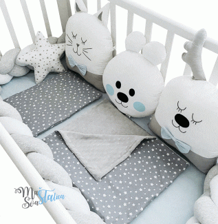 Ogradica za bebe – Šašava družina – siva sa plavim detaljima